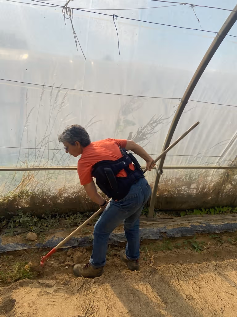Its activity is based on repetitive tasks, demanding postures and the regular carrying of heavy loads. Like many vegetable farmers, she gradually developed back pain due to the physical demands of the job.