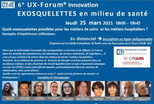 With the participation of: Amrei Smiles, TMS Prevention Referent, Foch Hospital,Anne-Sophie Picard, Project & Prevention Engineer, Geneva,Serena Ivaldi, INRIA/Loria Research Officer, ExoTurn CHU Nancy program,Pauline Maurice, CNRS Research Officer at Loria,Jean-Paul Carta, Co-director of LabCom Lemm,Benoit Sagot-Duvauroux, Exoskeleton Activity Manager, Gobio Europe Technologies,Anaïs Schoreel, Integration and Development Manager, Japet Médical,Anne-Marie de Vaivre, founder of the Cercle Entreprises et Santé, Vice President of the IAS,Jacques Bouvet, President of the Cercle Entreprises et Santé,Yonnel Giovanelli, Operational Innovation and New Physical Assistance Technologies Expert, SNCF,By Frédéric Teleliez, Director of 2IS, University Picardie Jules Verne,Prof. Sandra Bertezène, Professor holding the Health Services Management Chair, CNAM,And Jean-Marie Fessler, Associate professor, Stanford University, member of the Cercle Entreprises et Santé.