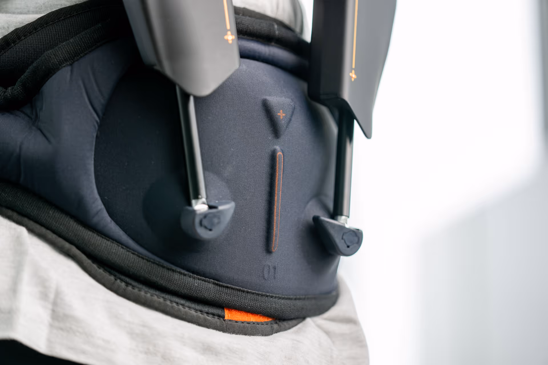 L'exosquelette Japet.W+ agit comme un amortisseur pour la colonne vertébrale : il absorbe les chocs et soulage la douleur lombaire.