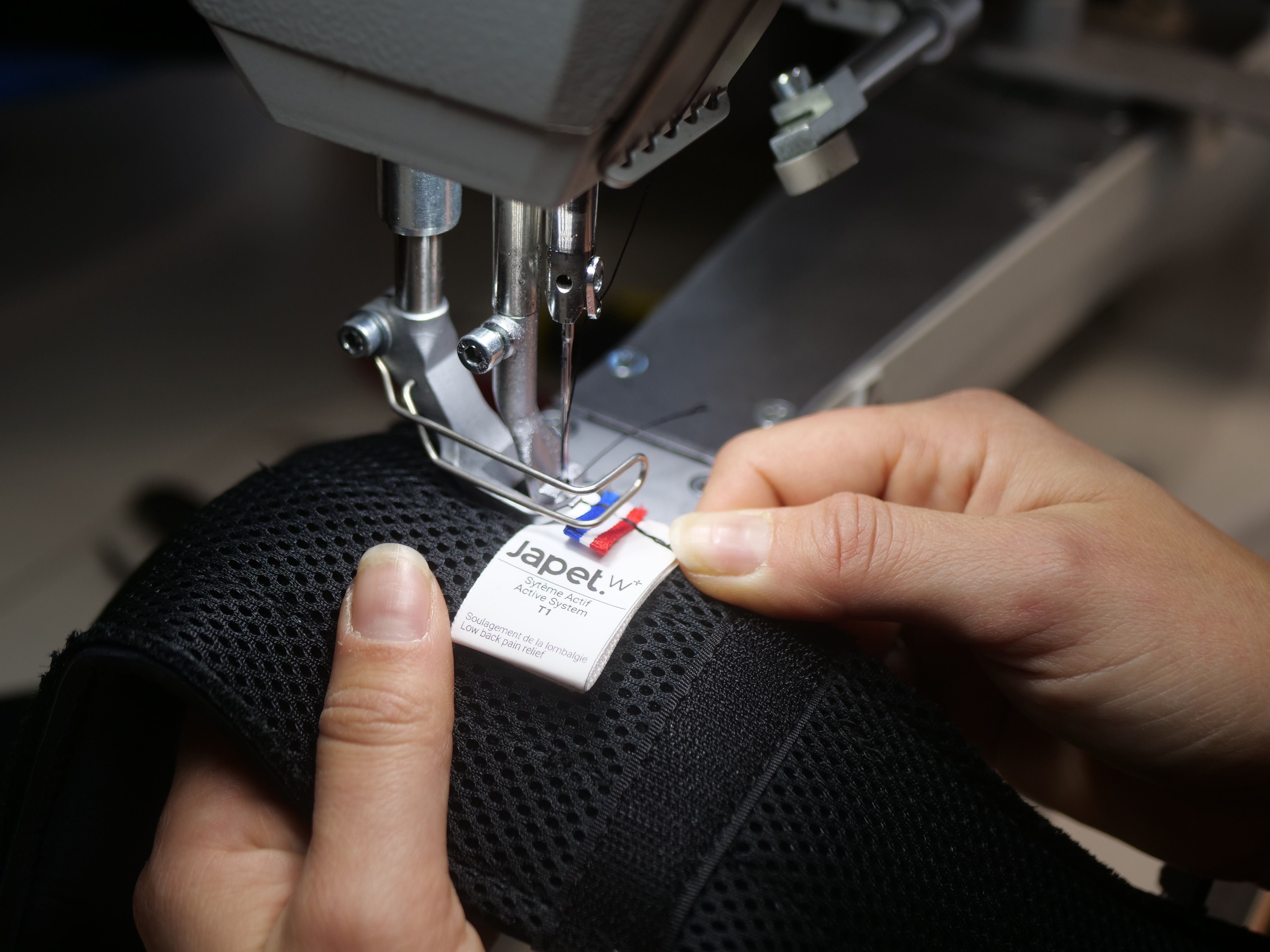 Le dispositif Japet.W+ est fabriqué dans notre atelier près de Lille, avec plus de 90% de matériaux sourcés en Europe. C'est l'un des seuls ateliers qui a le savoir-faire d'intégration de matériel robotique dans une enveloppe textile.